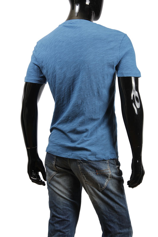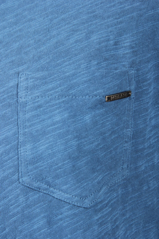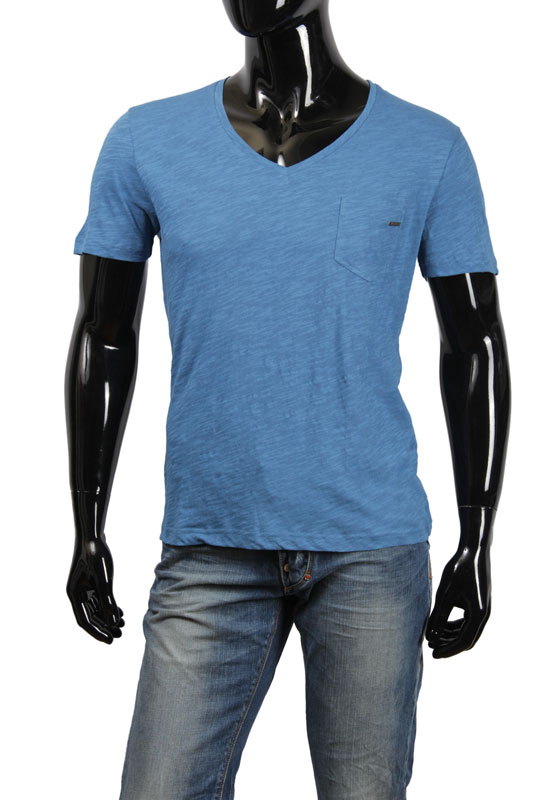 футболка синего цвета, с коротким рукавом и карманом с левой стороны